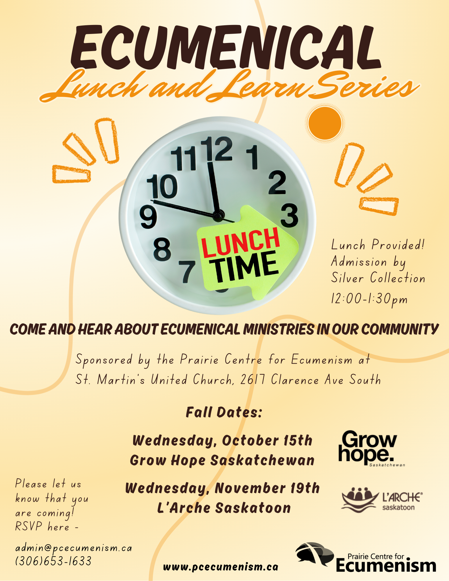 We are excited to announce that a series of Lunch and Learn sessions will be held monthly at St. Martin's United Church throughout the coming year. The purpose of this event is to inform attendees about the various ecumenical ministries and initiatives in our community.